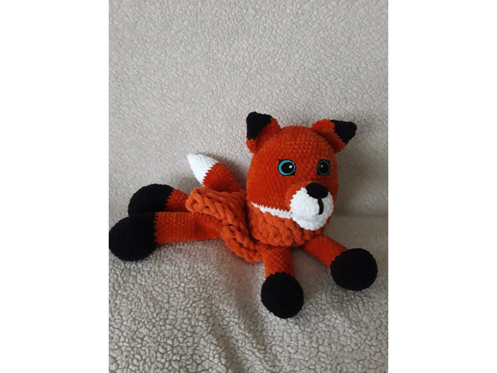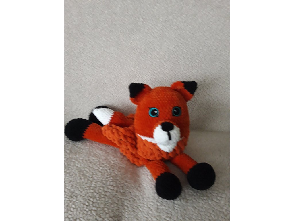 Hlavička, nohy, ruce jsou z příze DOLPHIN baby 100% micropolyester. Tělo je pletené prsty z příze Alize PUFFY 100% micropolyester. Je vyplněná antialergenním dutým vláknem a má vyšívaná očka.